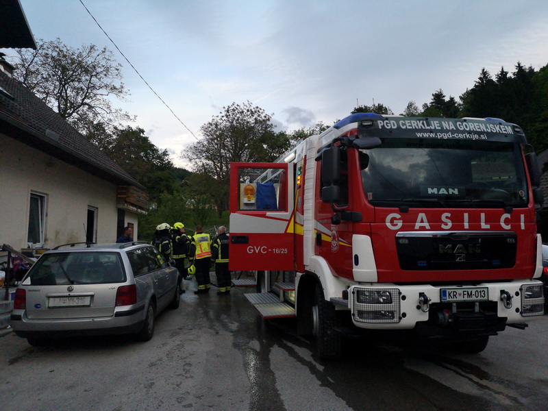 Ob 18.26 je zagorelo v kurilnici stanovanjske hiše v Adergasu. Ob prihodu na kraj je bil požar že močno razvit. Gasilci PGD Cerklje, Velesovo in Zgornji Brnik smo s hitrim posredovanjem požar pogasili in preprečili, da bi se le ta razširil na ostali del objekta. Prostor smo prezračili, izklopili elektriko, zaprli vodo, iznesli ožgan material iz objekta in pregledali kurilnico s termovizijsko kamero. V požaru je bila kurilnica popolnoma uničena.