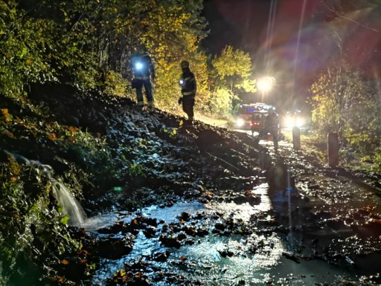 4:45 med vračanjem proti gasilskemu domu smo prejeli obvestilo, da je na cesti Grad – Štefanja Gora plaz zasul cesto. Na kraju smo preko ReCo Kranj obvestili vzdrževalca cest in PP Kranj, da smo odredili popolno zaporo ceste zaradi plazu, kraj smo zavarovali do prihoda vzdrževalca ceste.